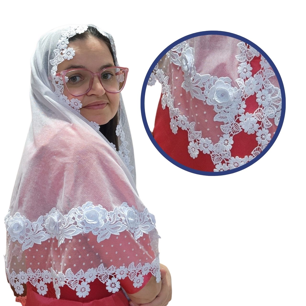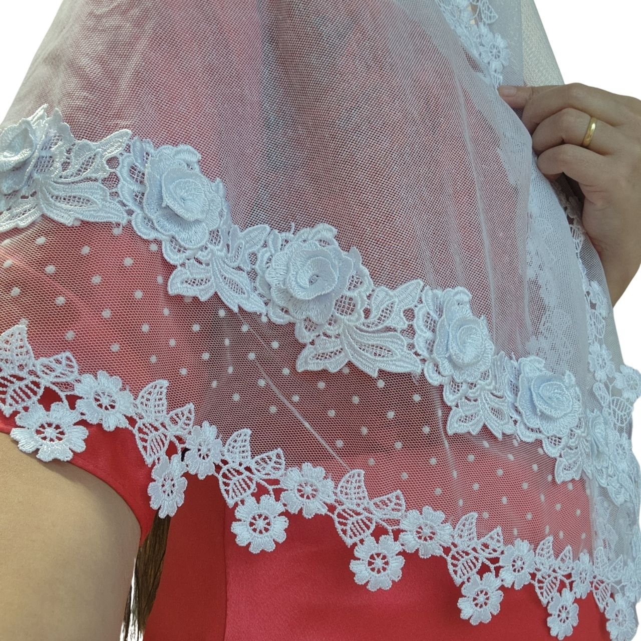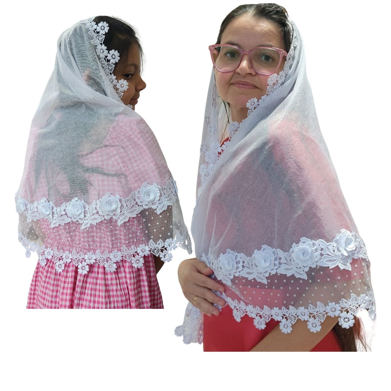 Kit Mãe e filha Véu CCB Adulto 3D Com Aplicação de Tule Poá