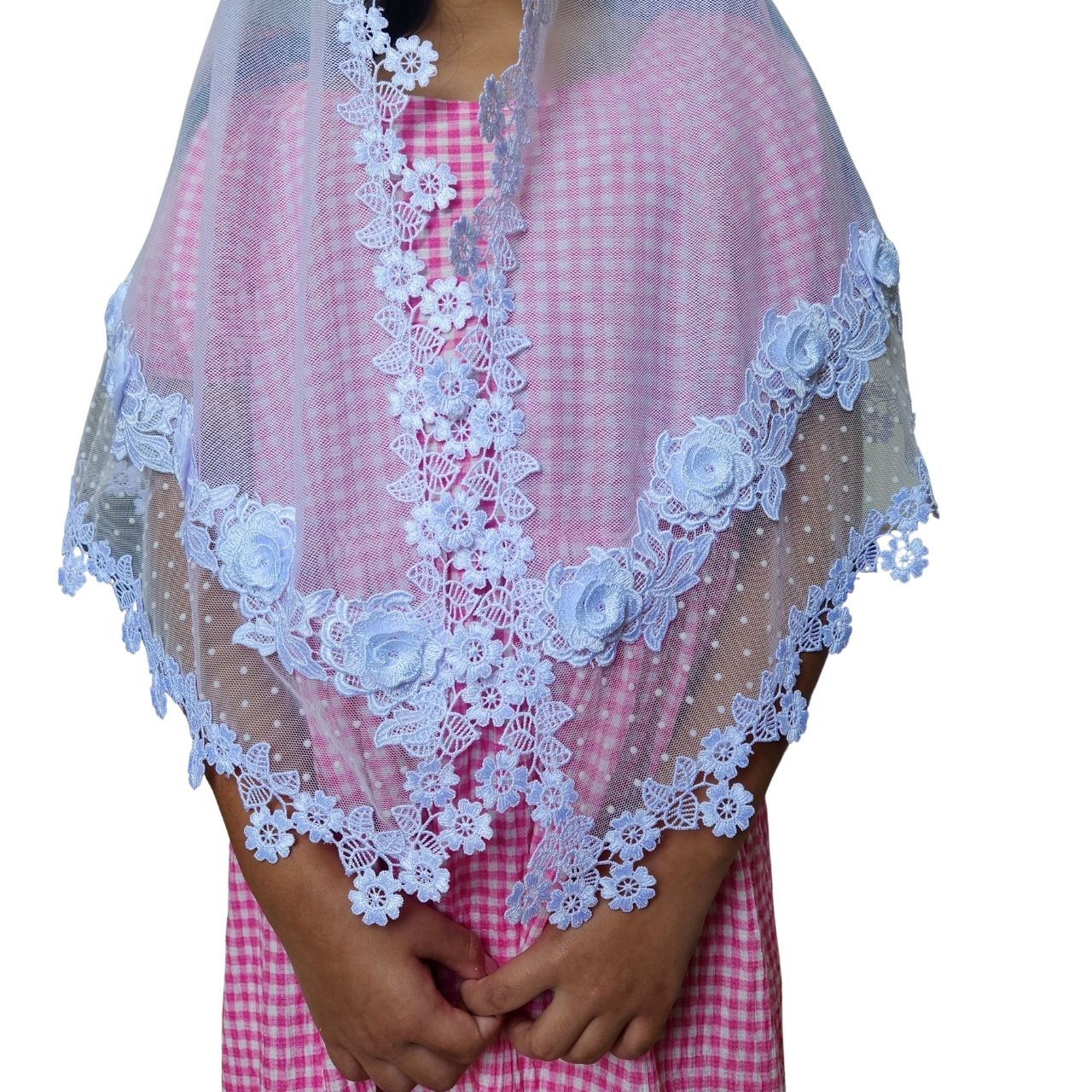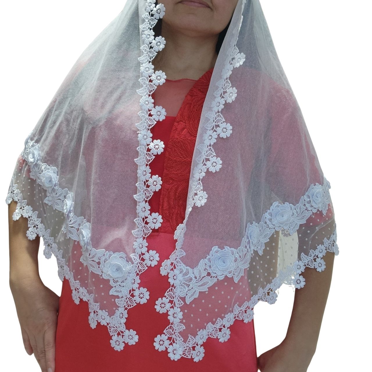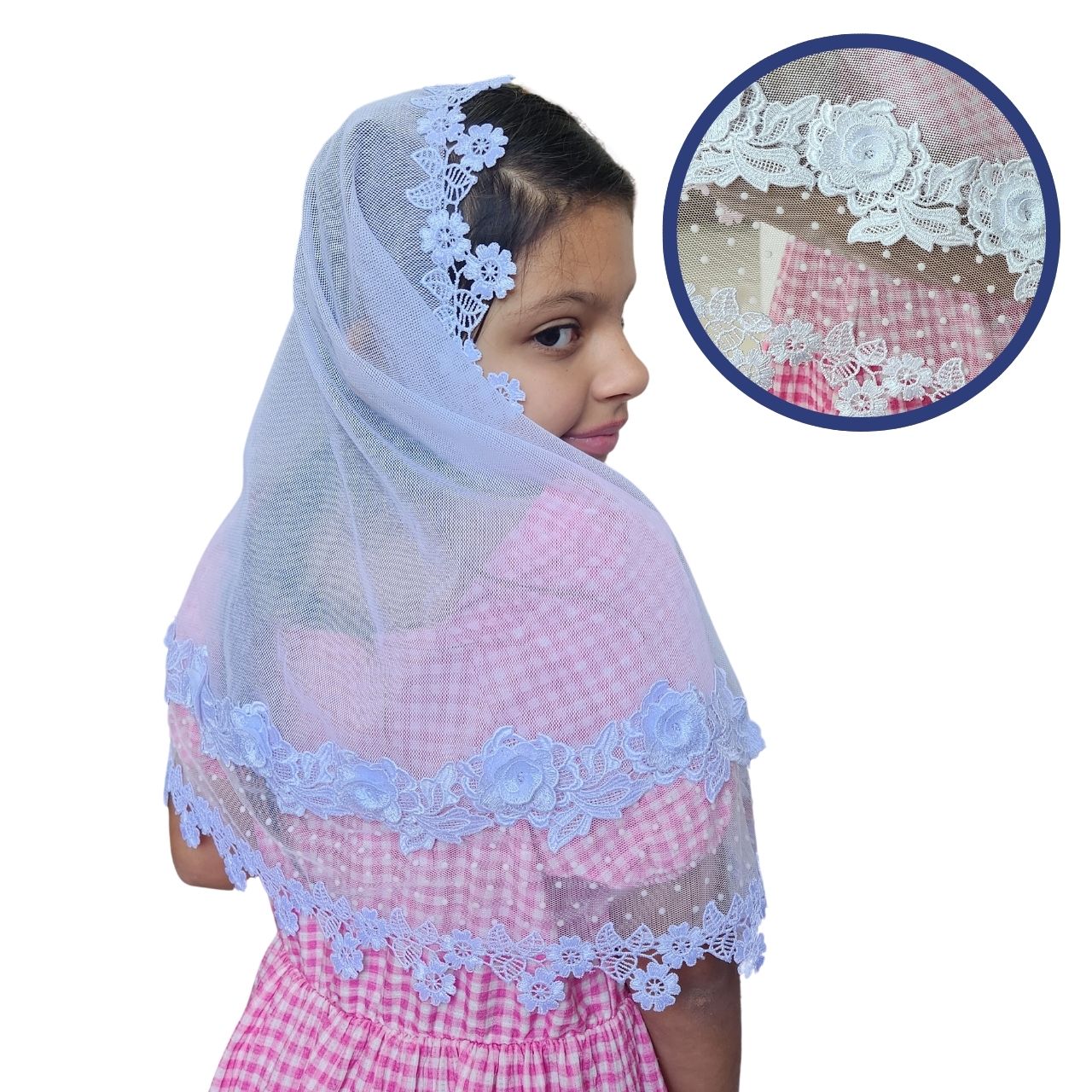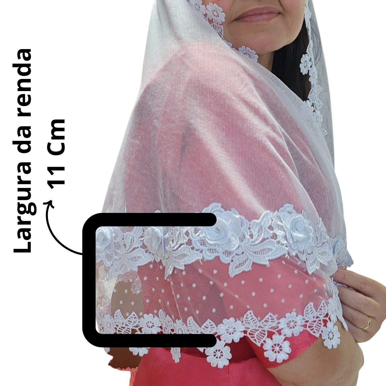 Kit Mãe e filha Véu CCB Adulto 3D Com Aplicação de Tule Poá