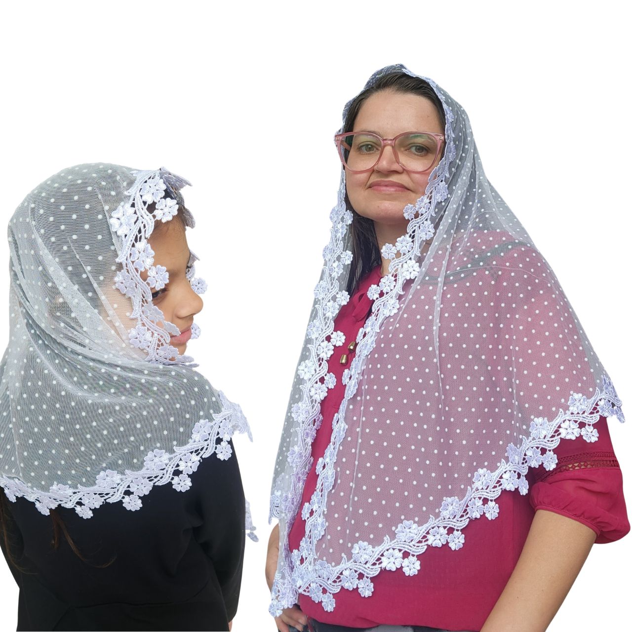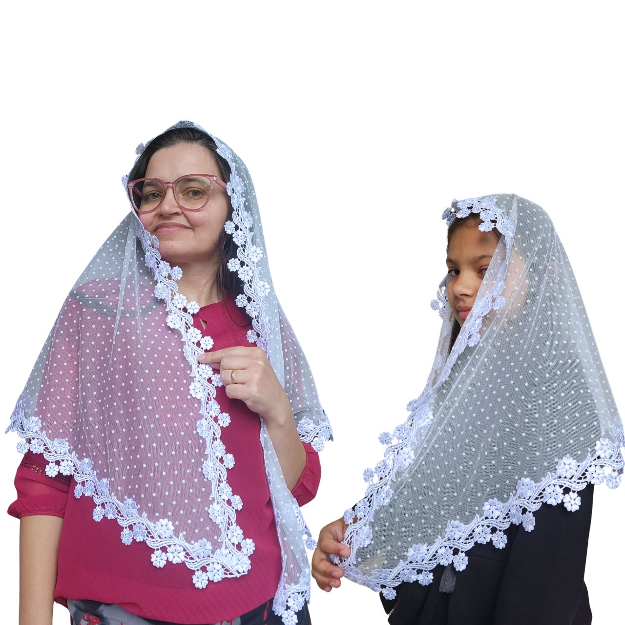 Kit Véu CCB Mãe e Filha – Tule Poá com Renda Guipir
