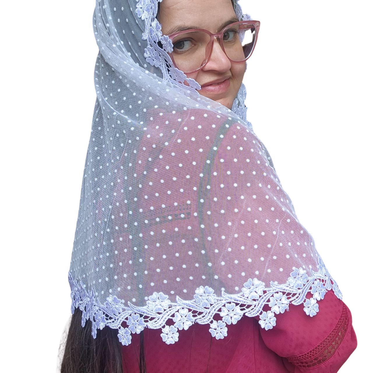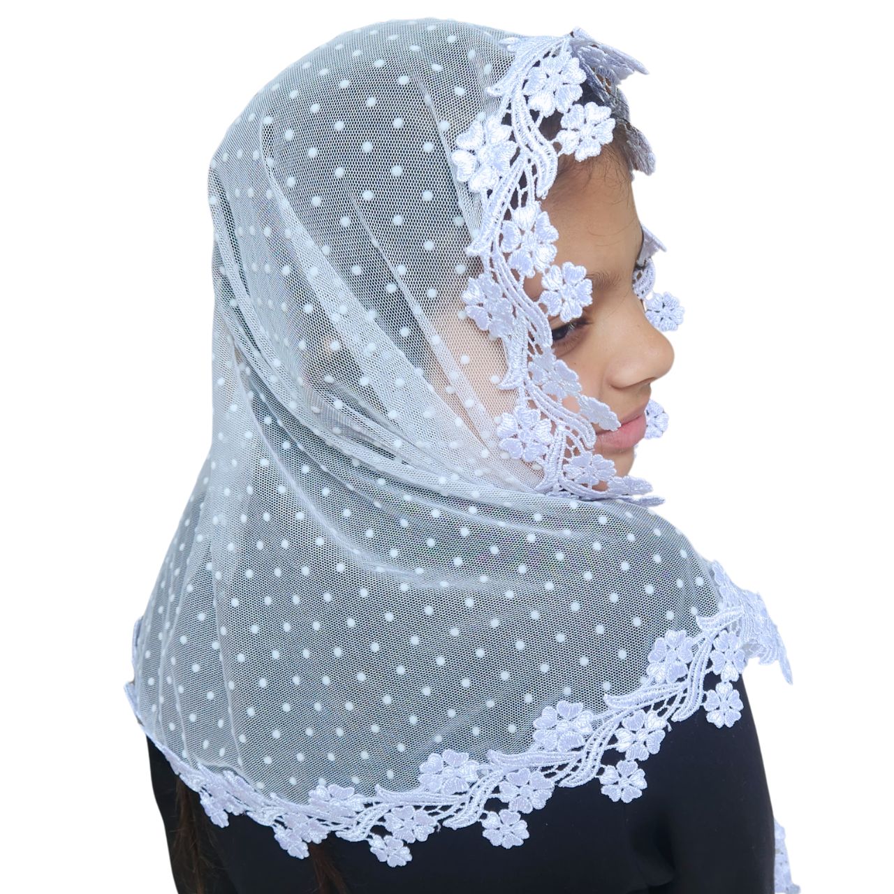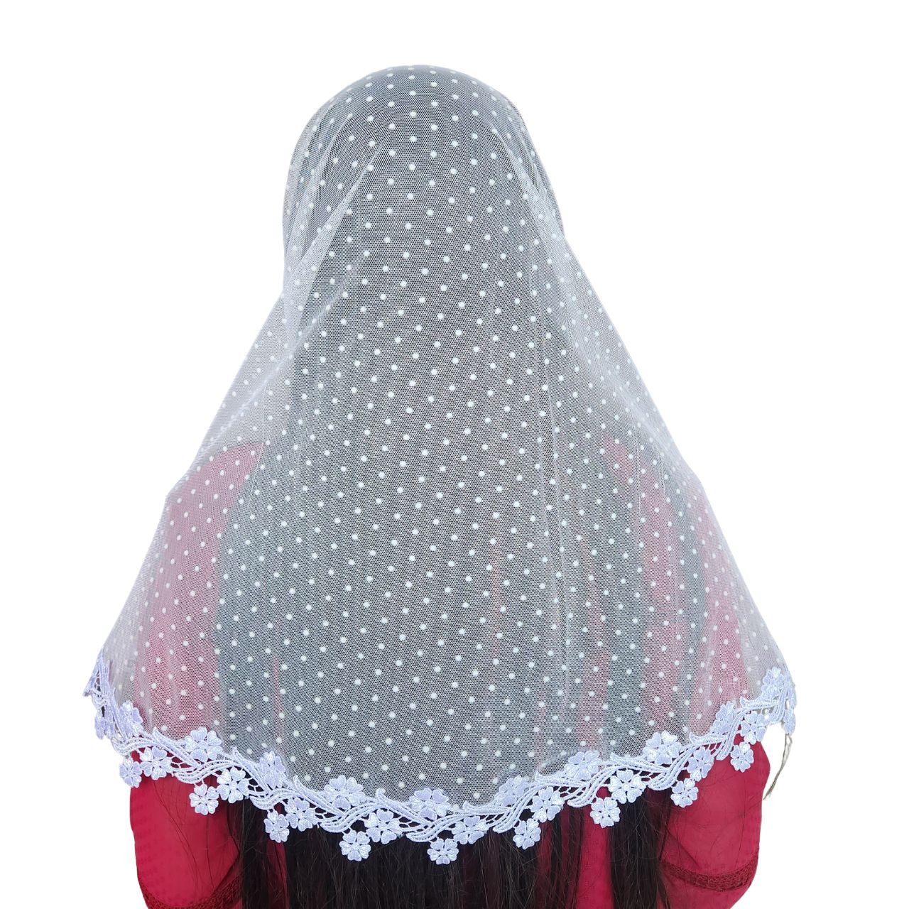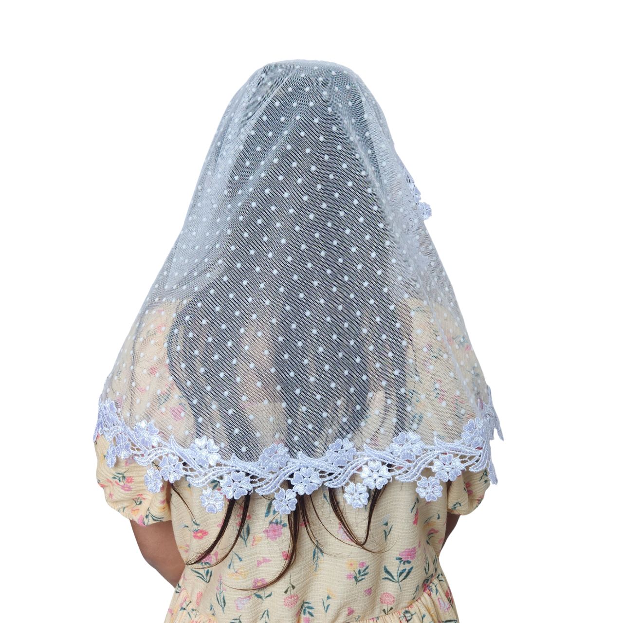 O Kit Véu CCB Mãe e Filha é confeccionado com materiais de alta qualidade: Tule Poá com bolinhas delicadas e Renda Guipir, ambos em 100% poliéster.