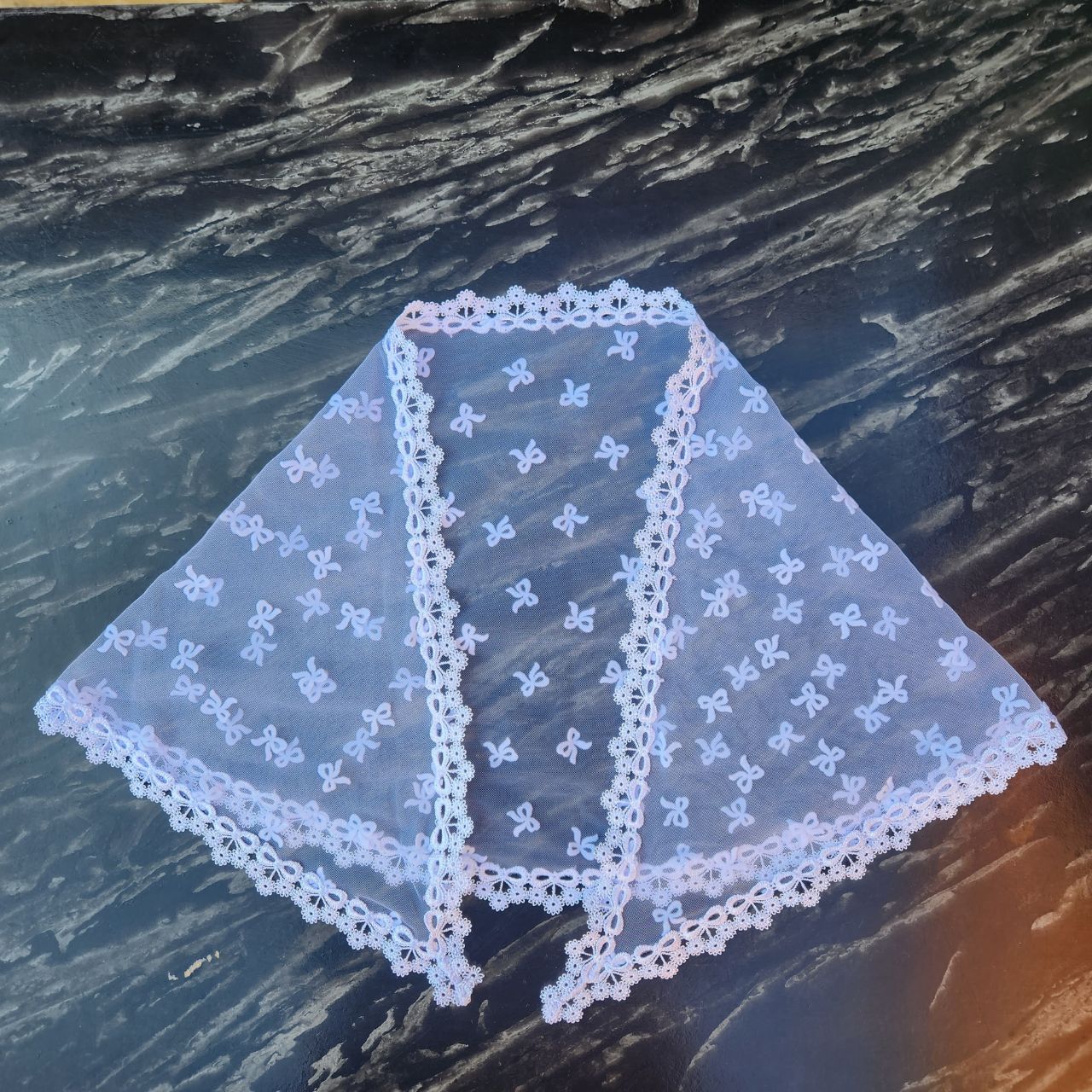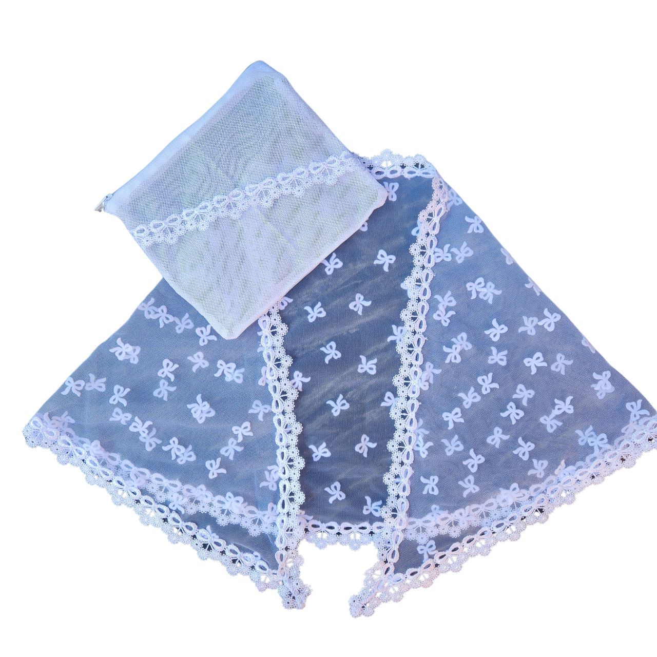 Véu CCB Bebê Renda Estreita Tule Poá Laço