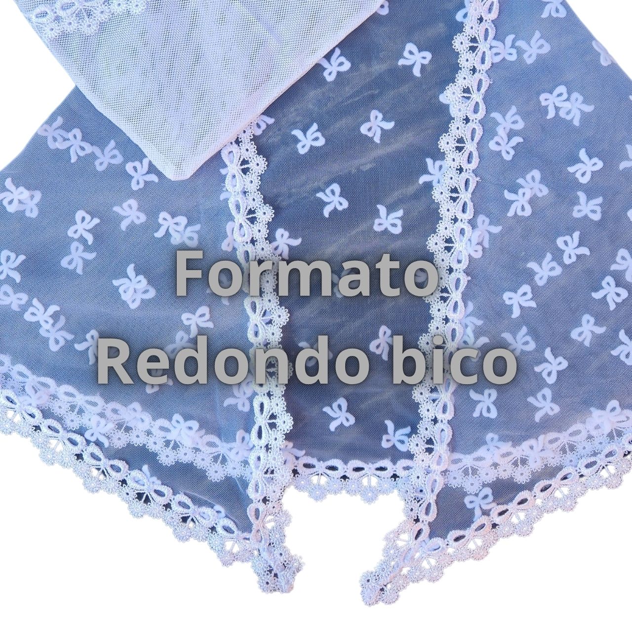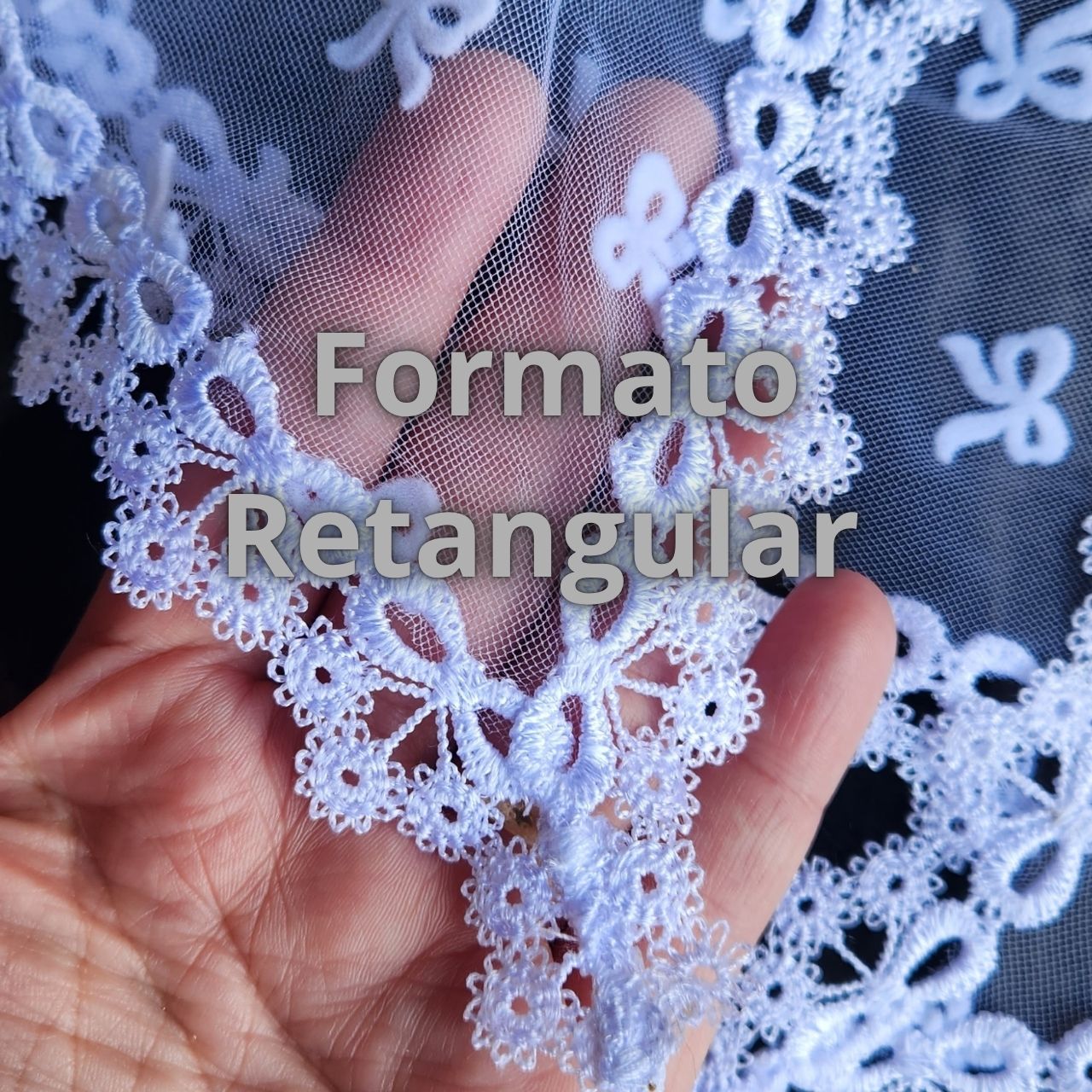 RETANGULAR = Ou véu Quadrado, é o formato mais tradicional. Ele é um retângulo com 4 bicos.