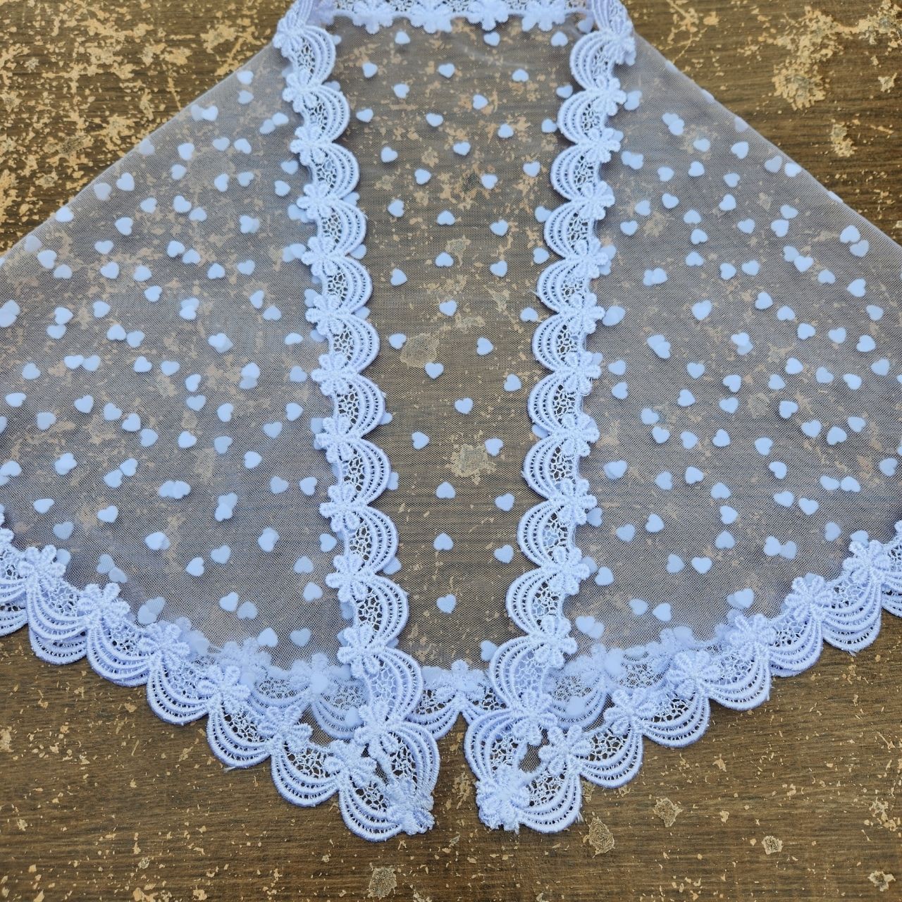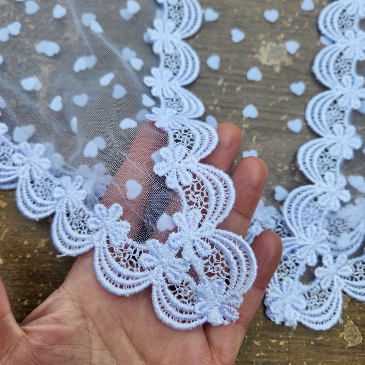 Dimensão: Aprox. 80 cm x 30 cm (podendo variar conforme a largura da renda)