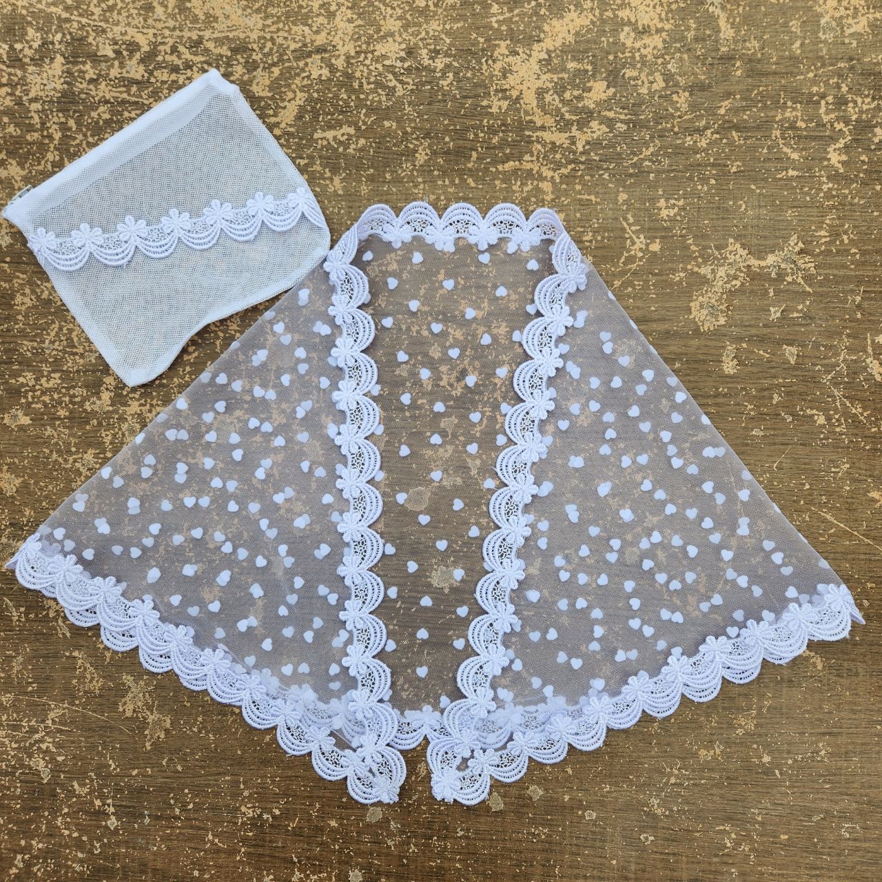 Véu CCB Bebê Tule Poá Coração 0 a 3 Anos