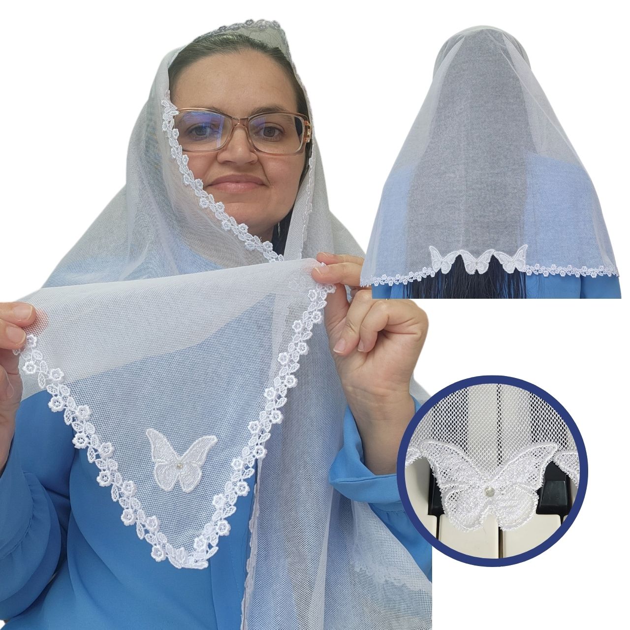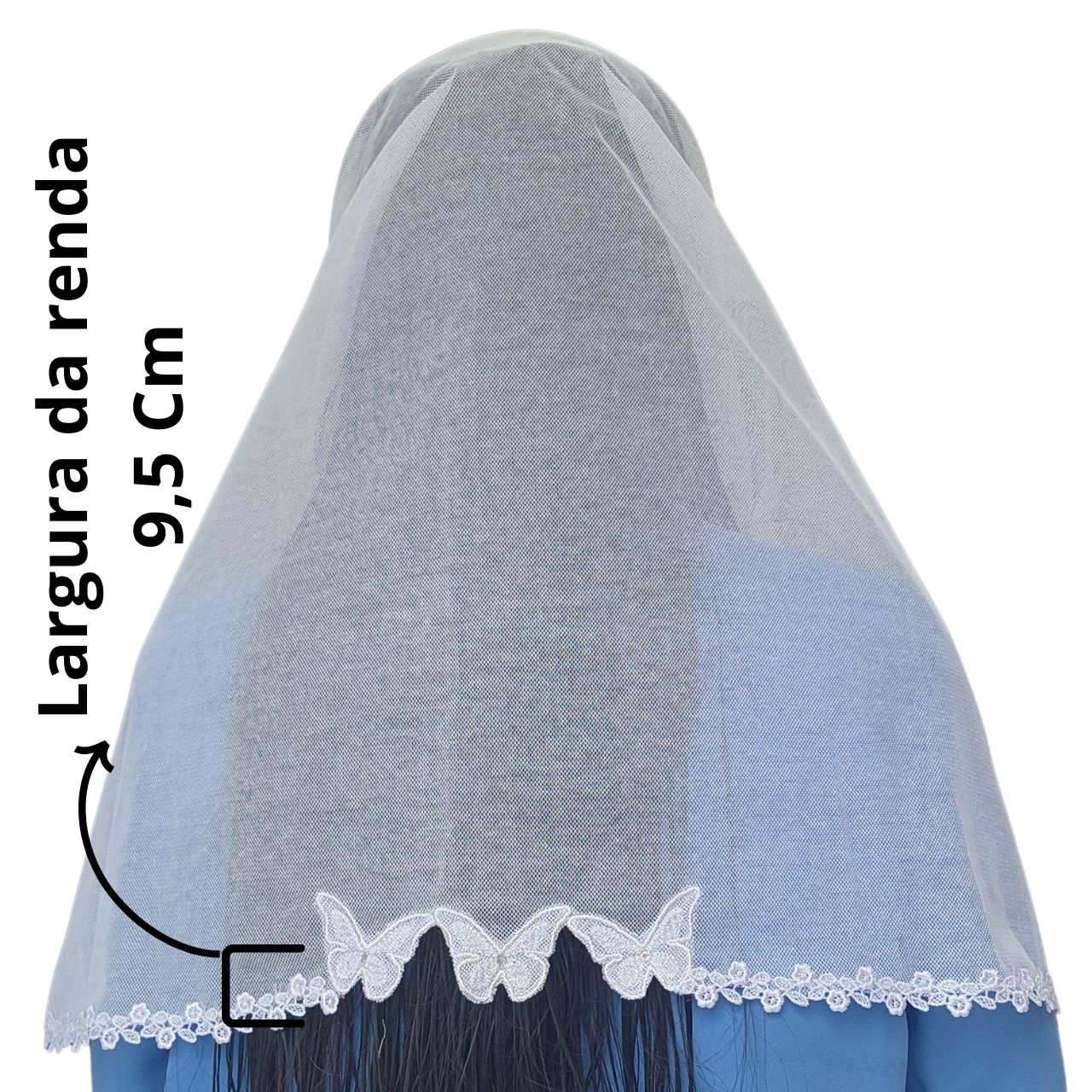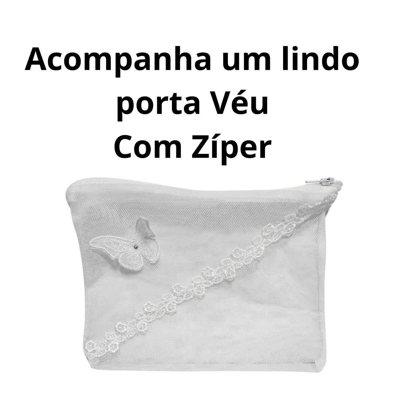 Véu Ccb Borboleta Renda Estreita Com Aplicação de Stras
