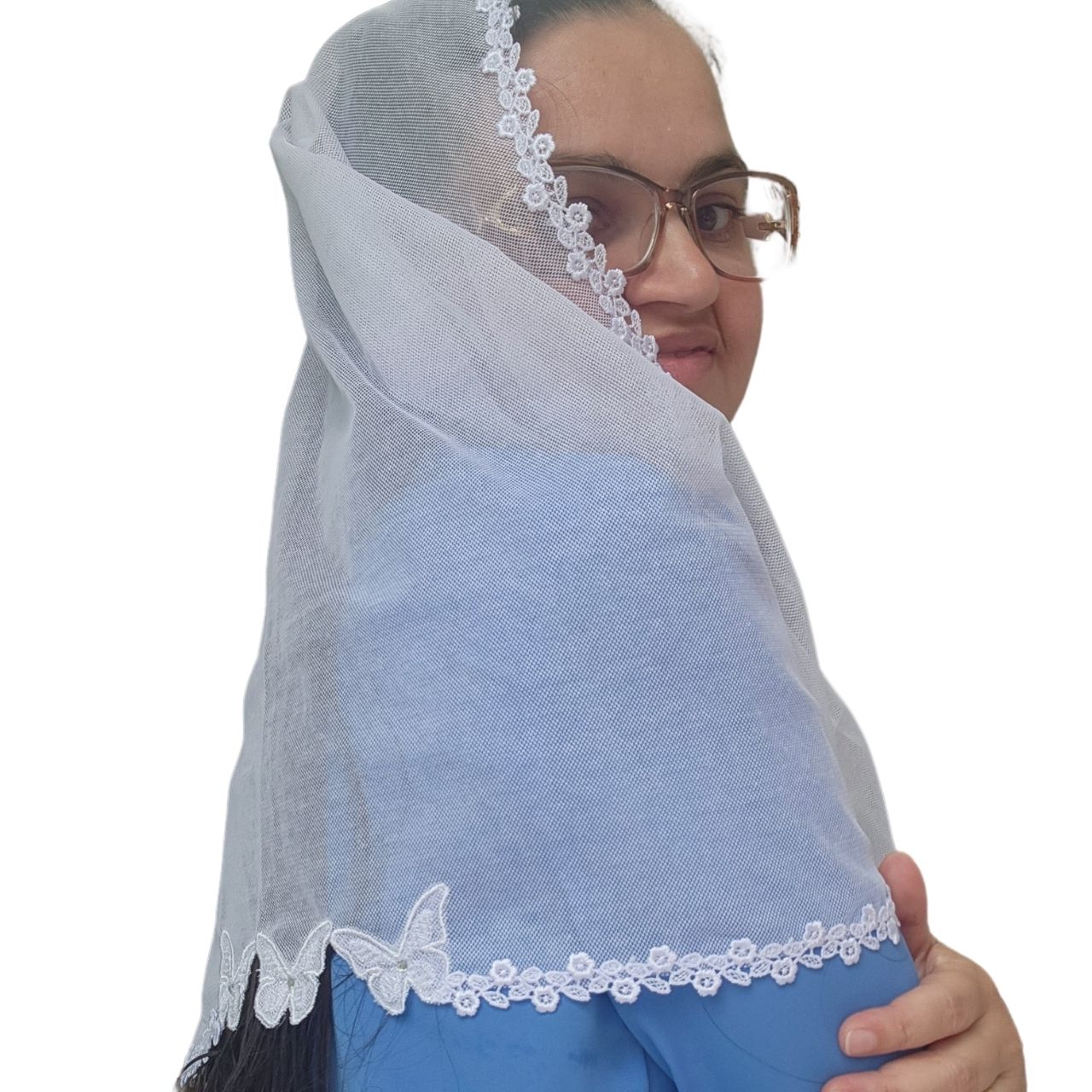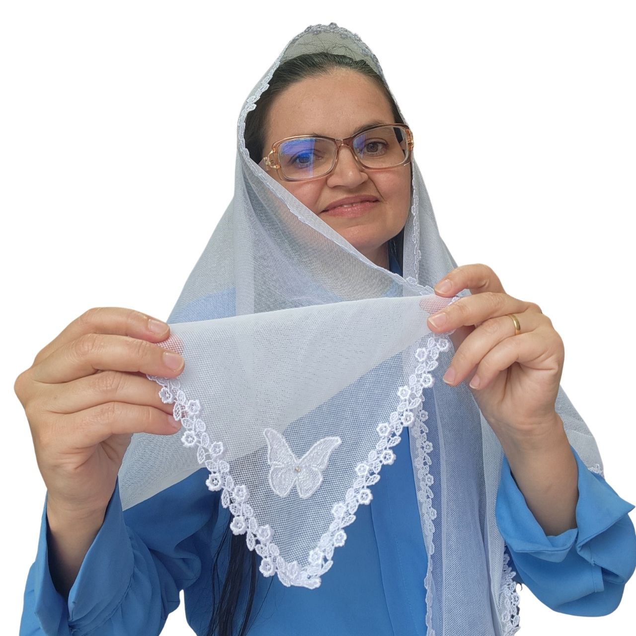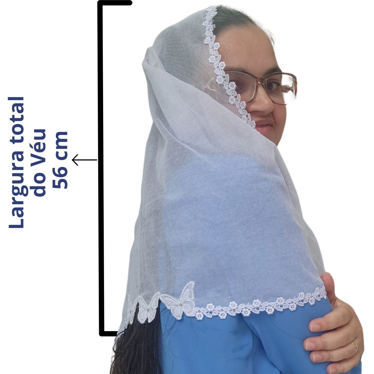 Véu Ccb Borboleta Renda Estreita Com Aplicação de Stras