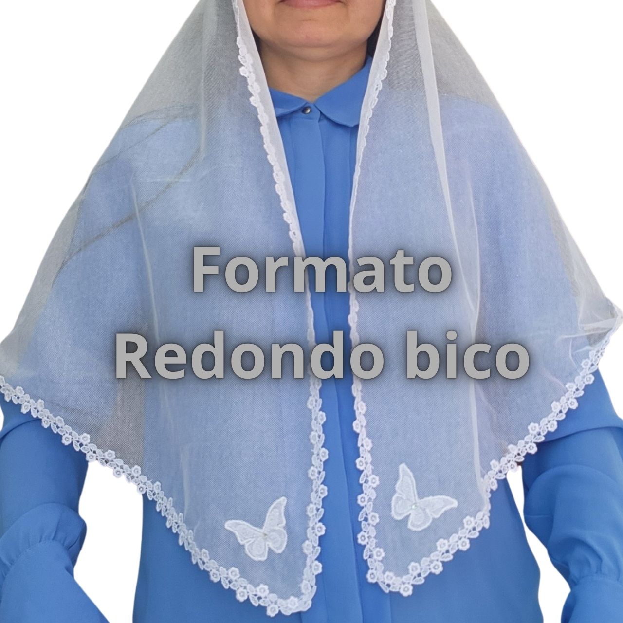 RETANGULAR = Ou véu Quadrado, é o formato mais tradicional. Ele é um retângulo com 4 bicos.