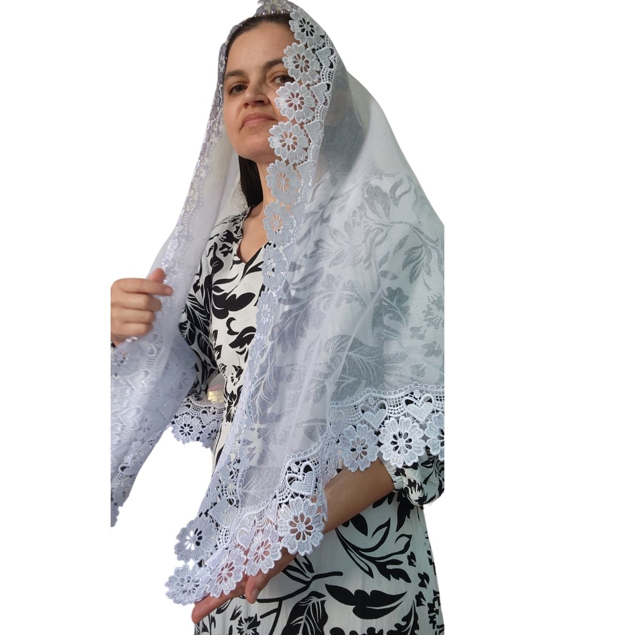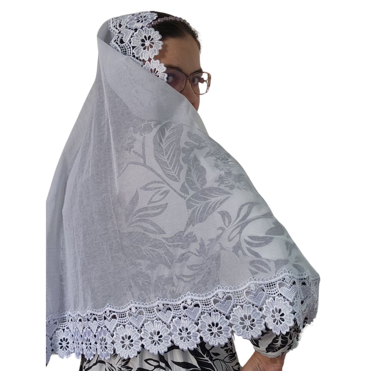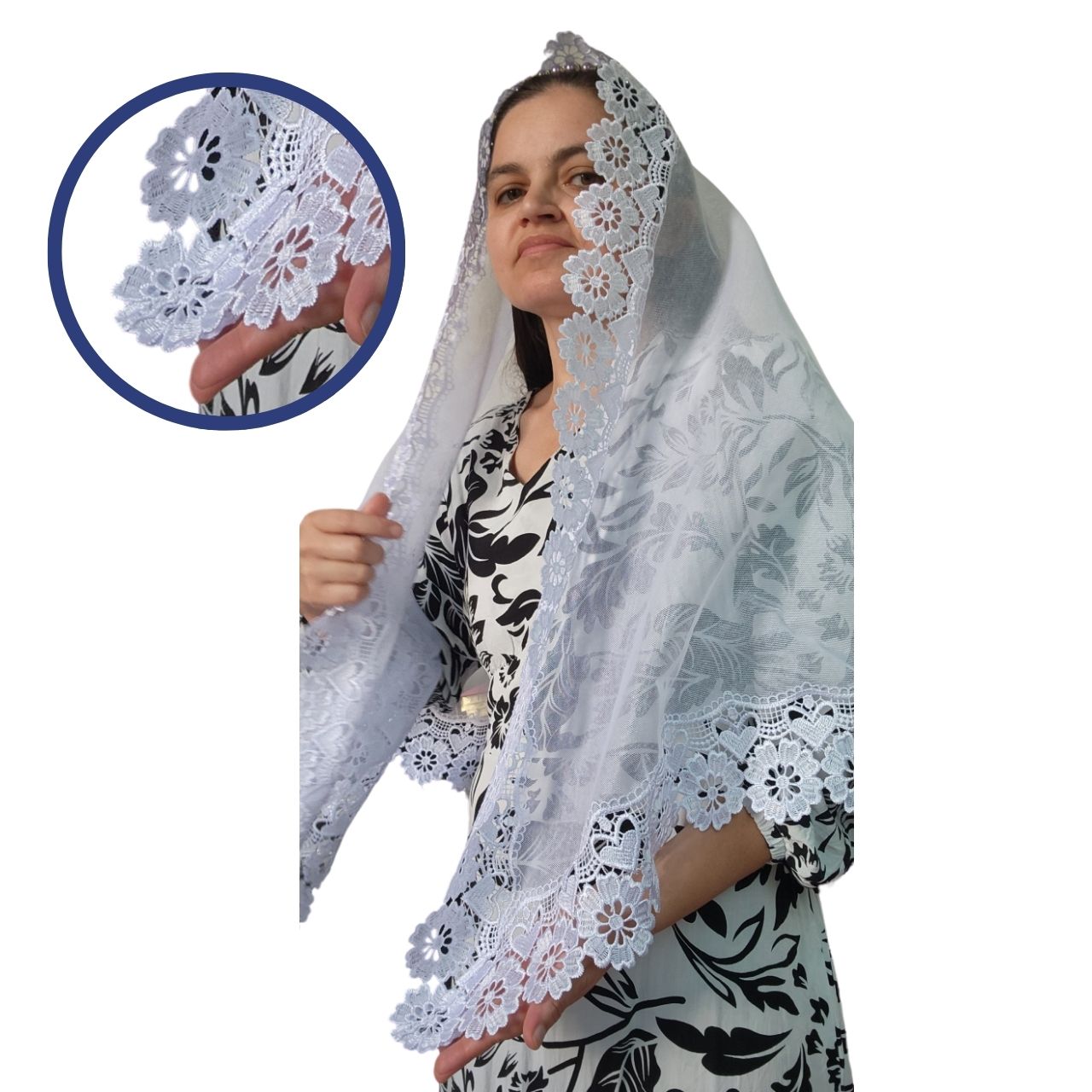 Véu Ccb Coração Renda Larga Redondo ou Retangular Adulto