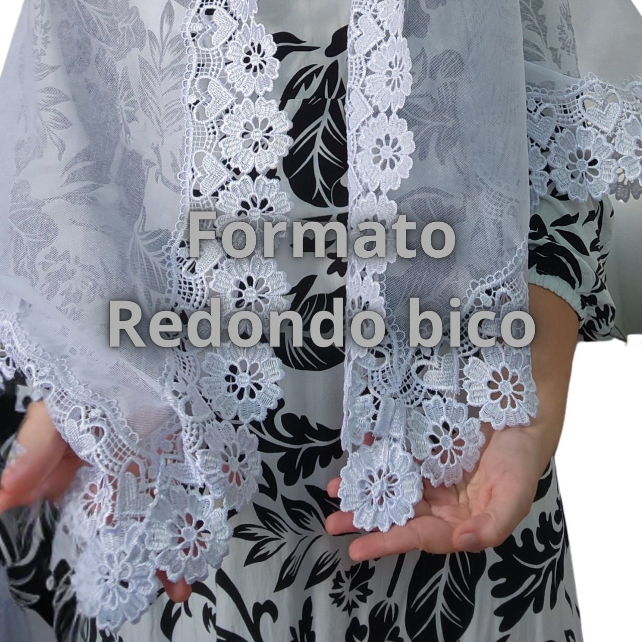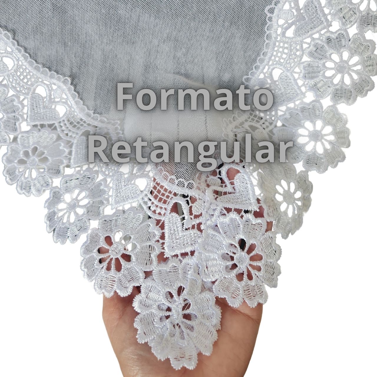 RETANGULAR = Ou véu Quadrado, é o formato mais tradicional. Ele é um retângulo com 4 bicos.