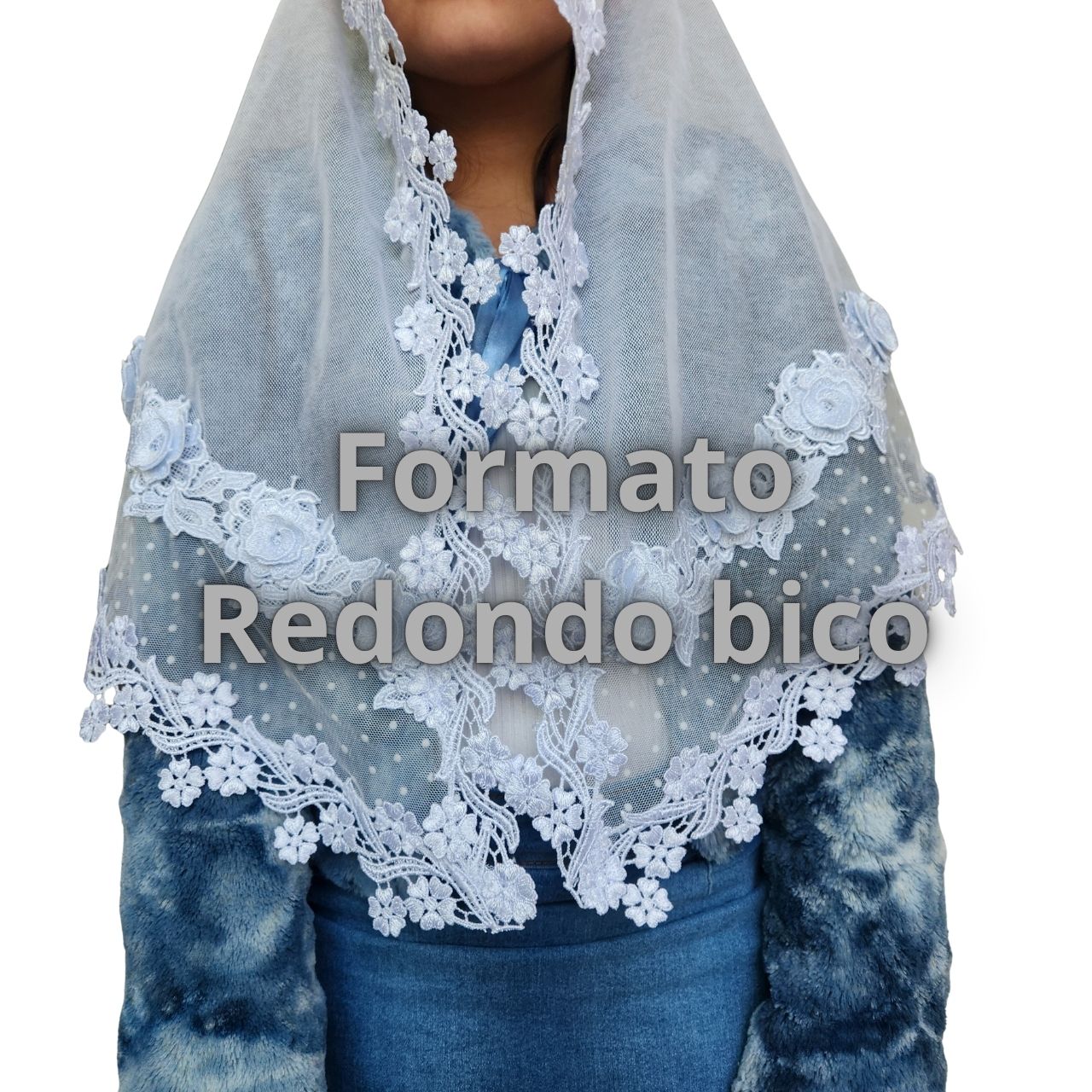 RETANGULAR = Ou véu Quadrado, é o formato mais tradicional. Ele é um retângulo com 4 bicos.