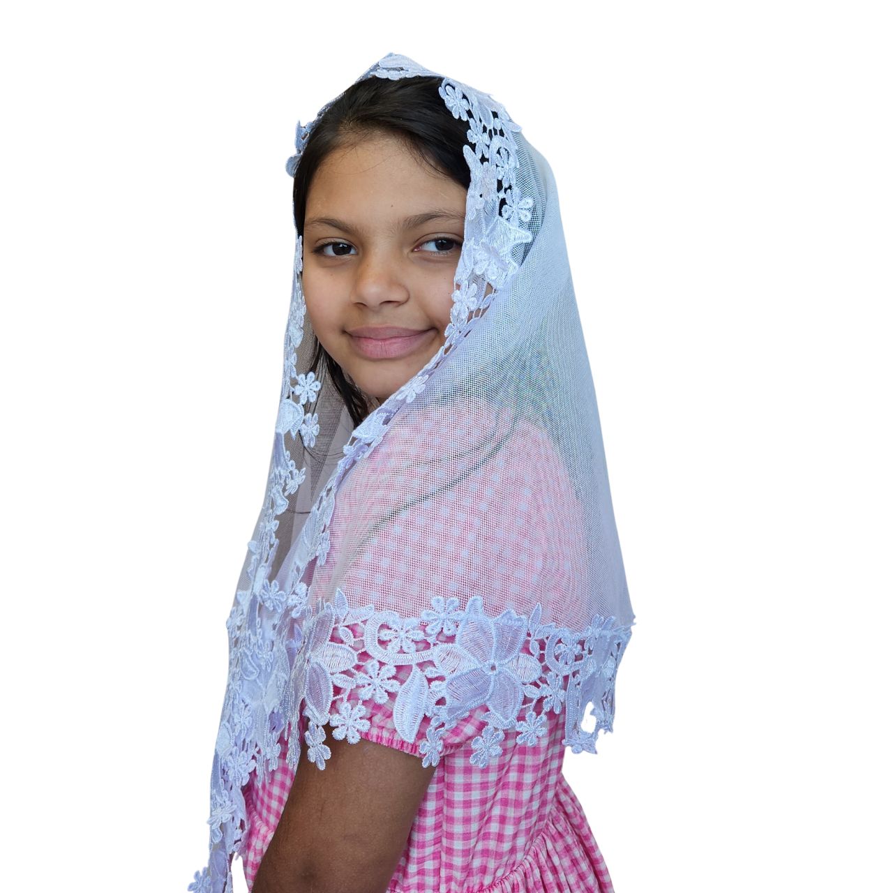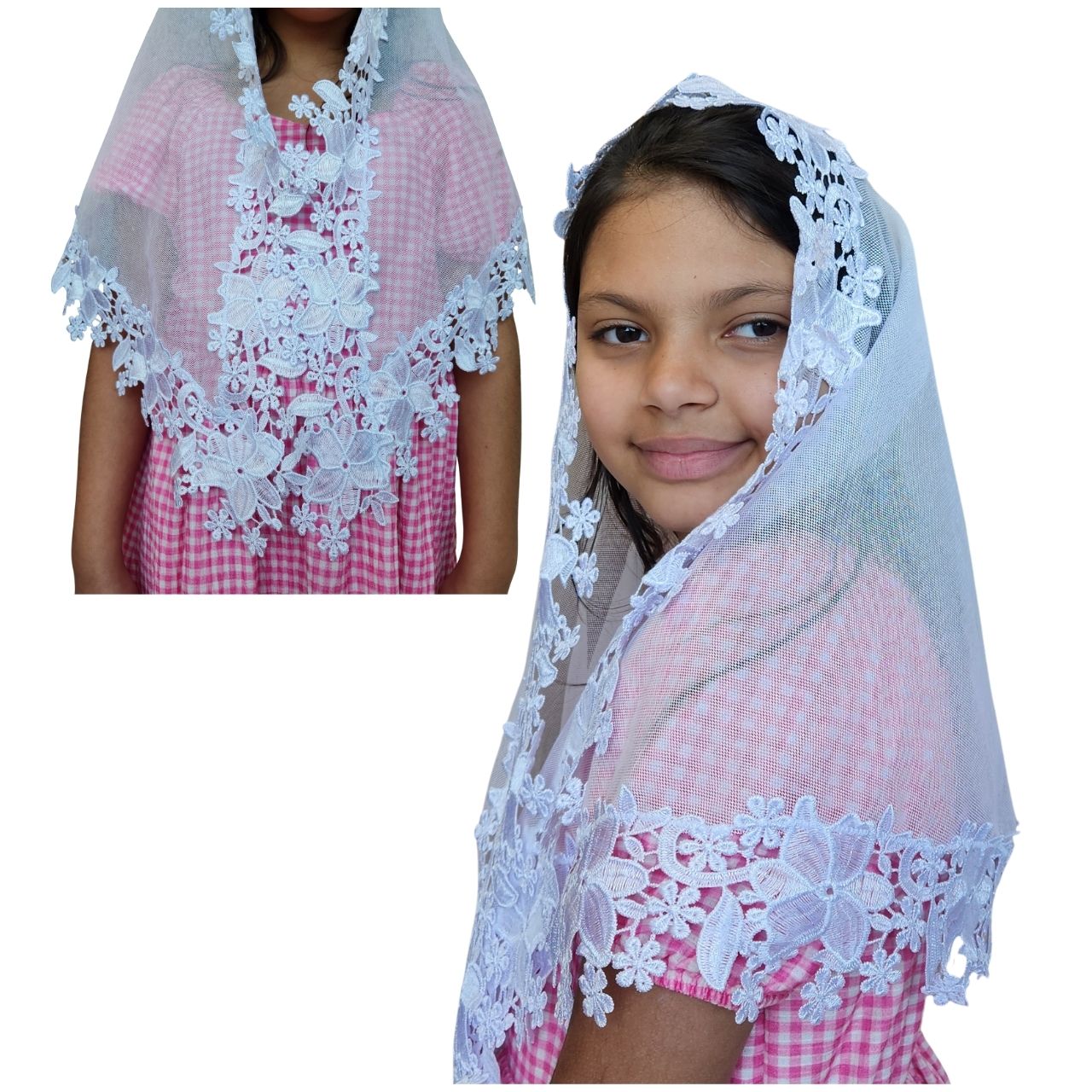 Véu CCB Infantil luxo Com Aplicação Rosa 3D Nas Pontas