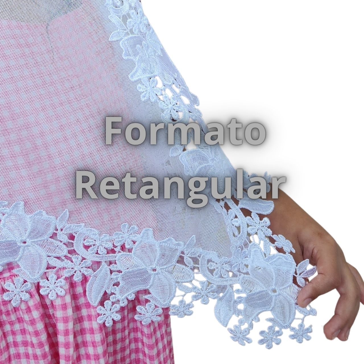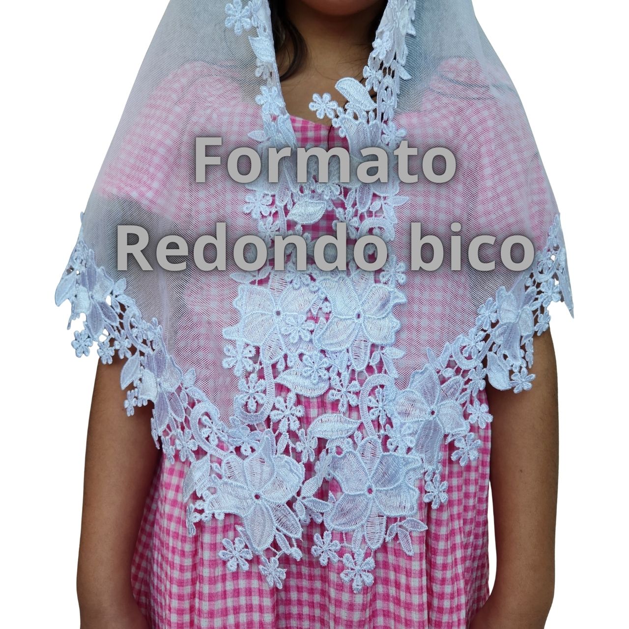 RETANGULAR = Ou véu Quadrado, é o formato mais tradicional. Ele é um retângulo com 4 bicos.