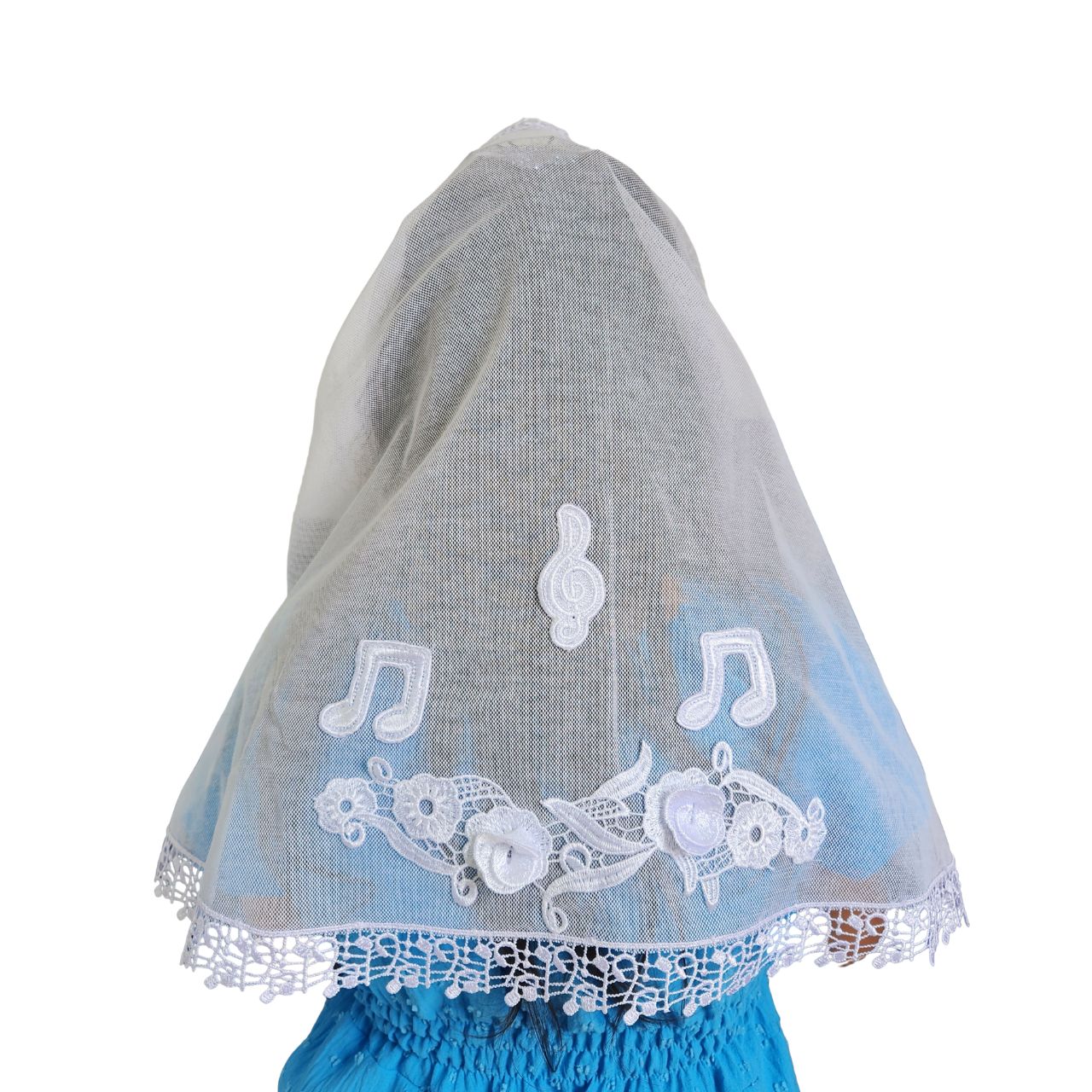 Véu CCB Infantil Organista Renda Estreita Com Aplicação