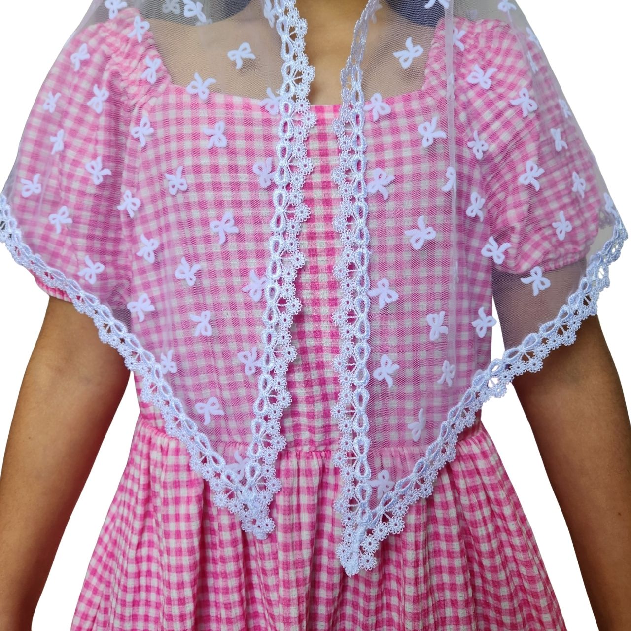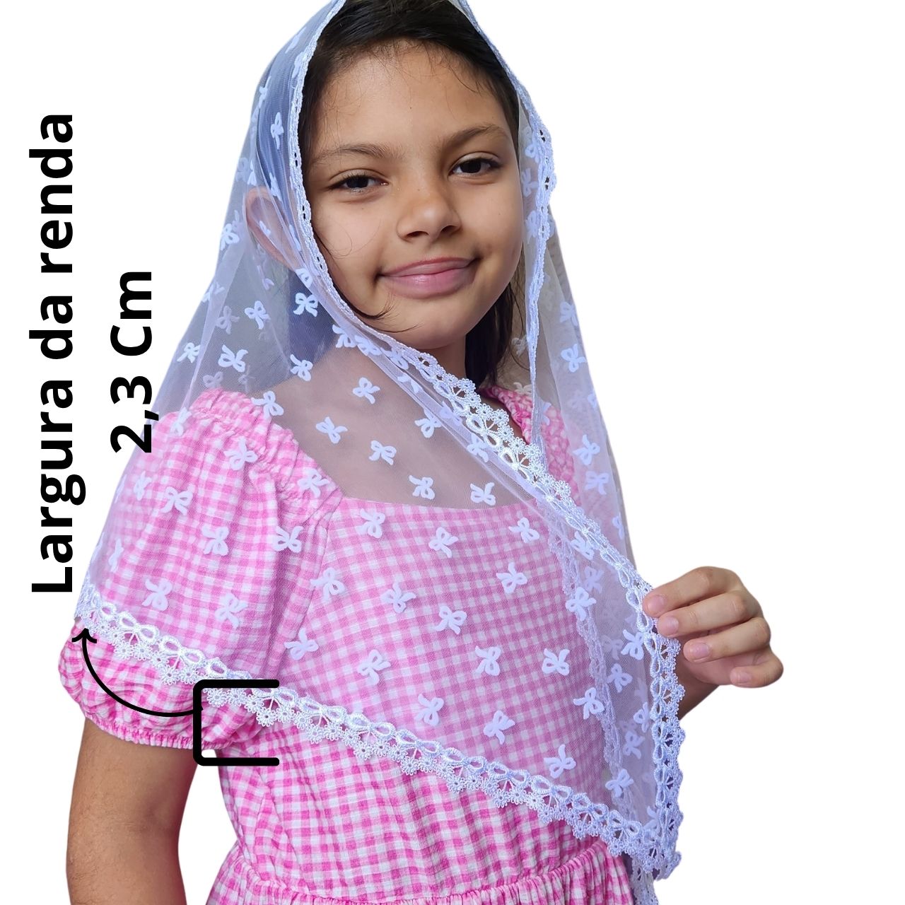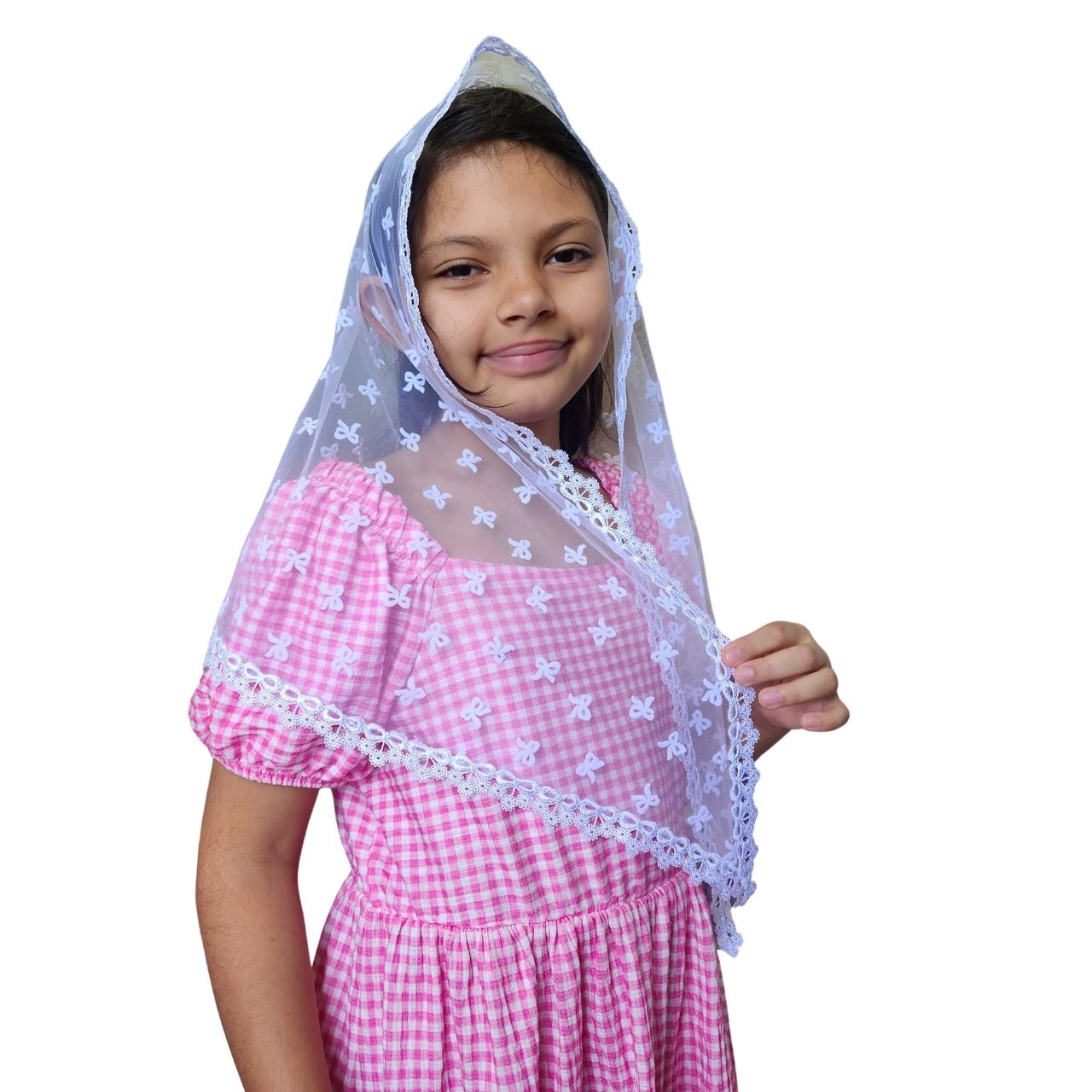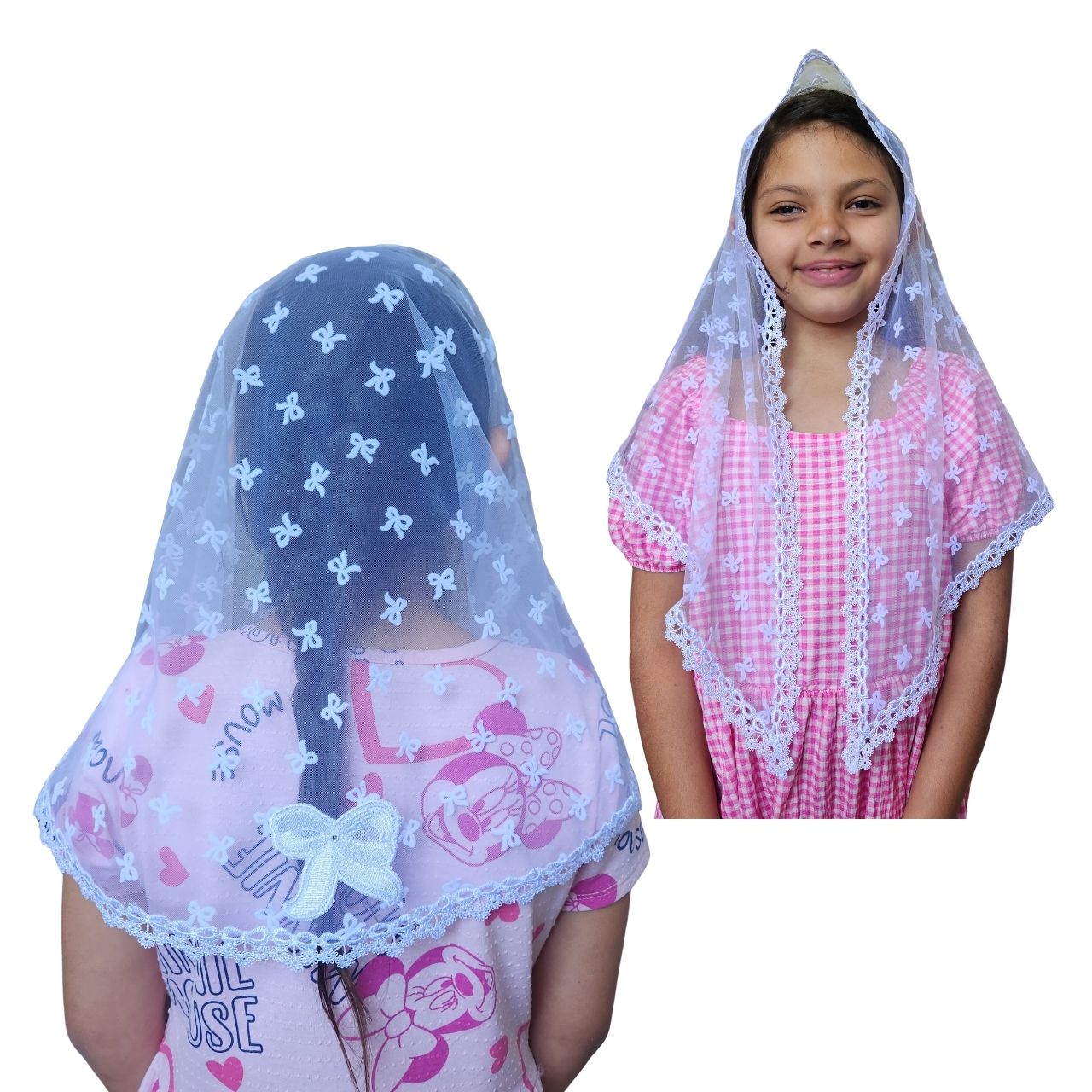 Véu CCB Infantil Tule Poá Laço Com Aplicação