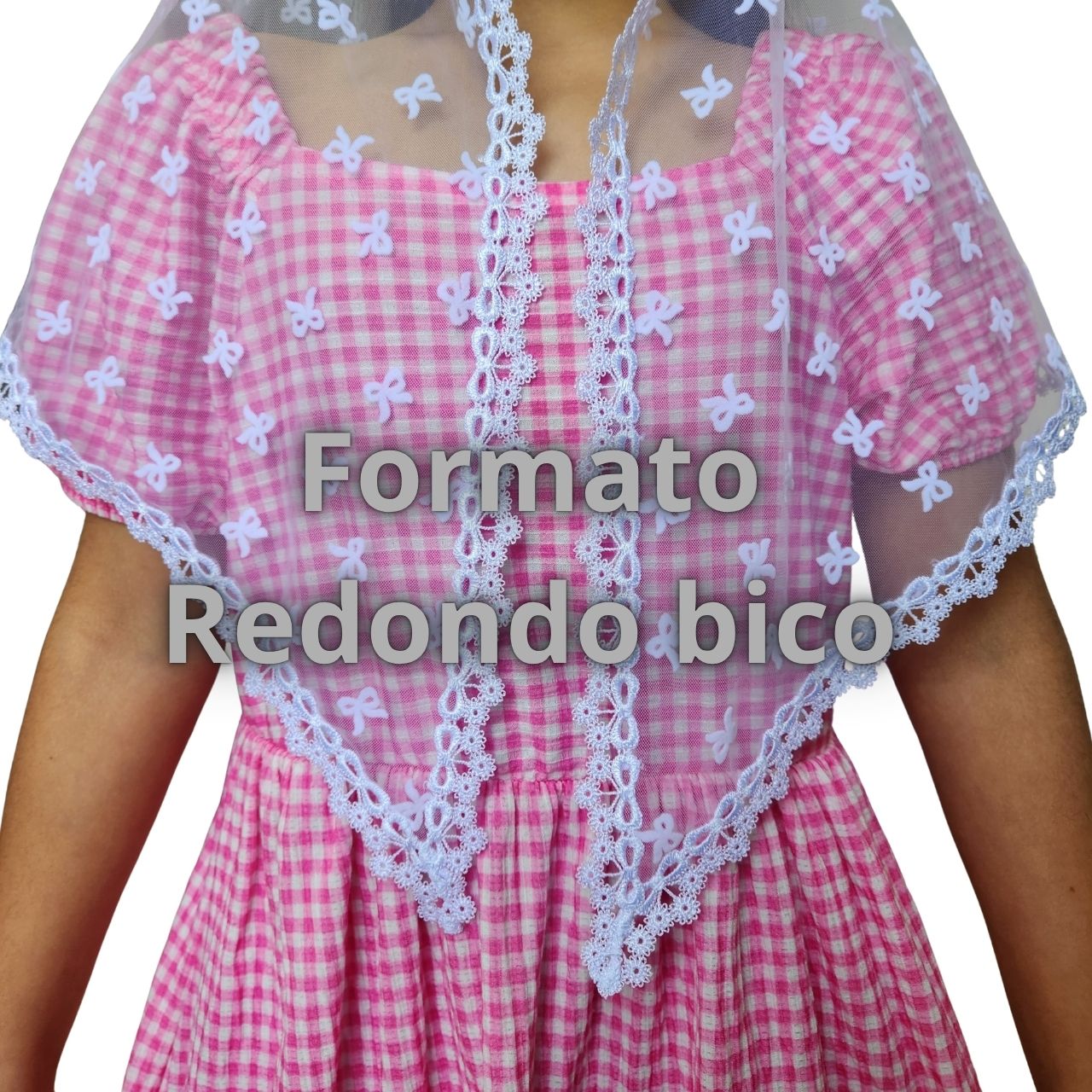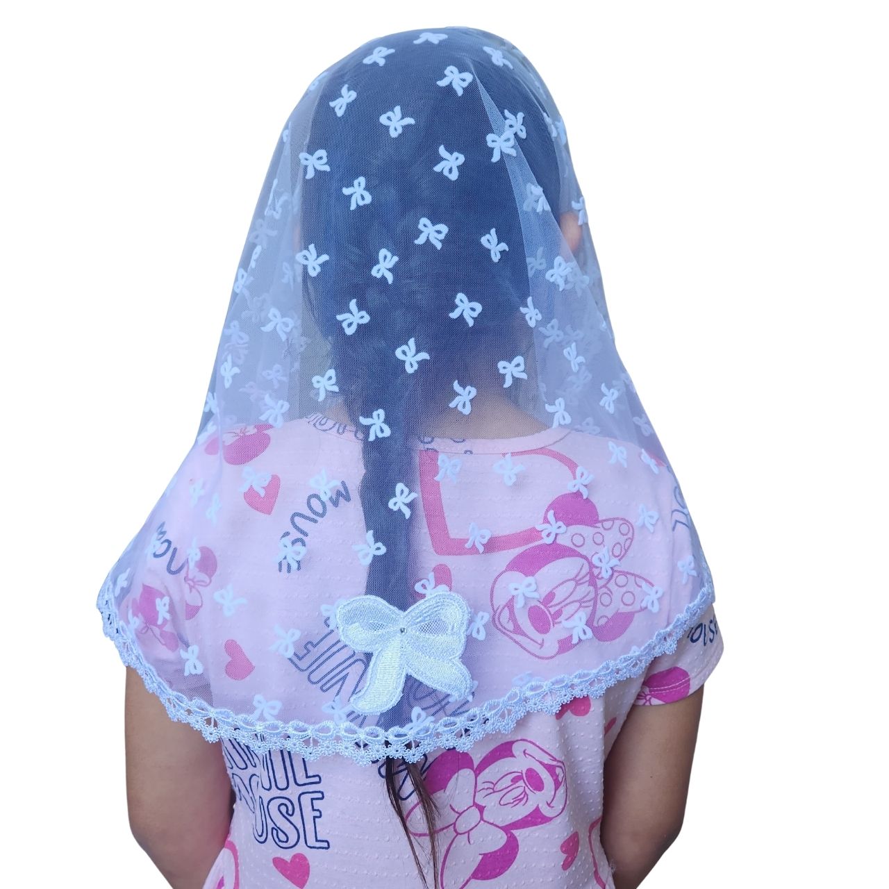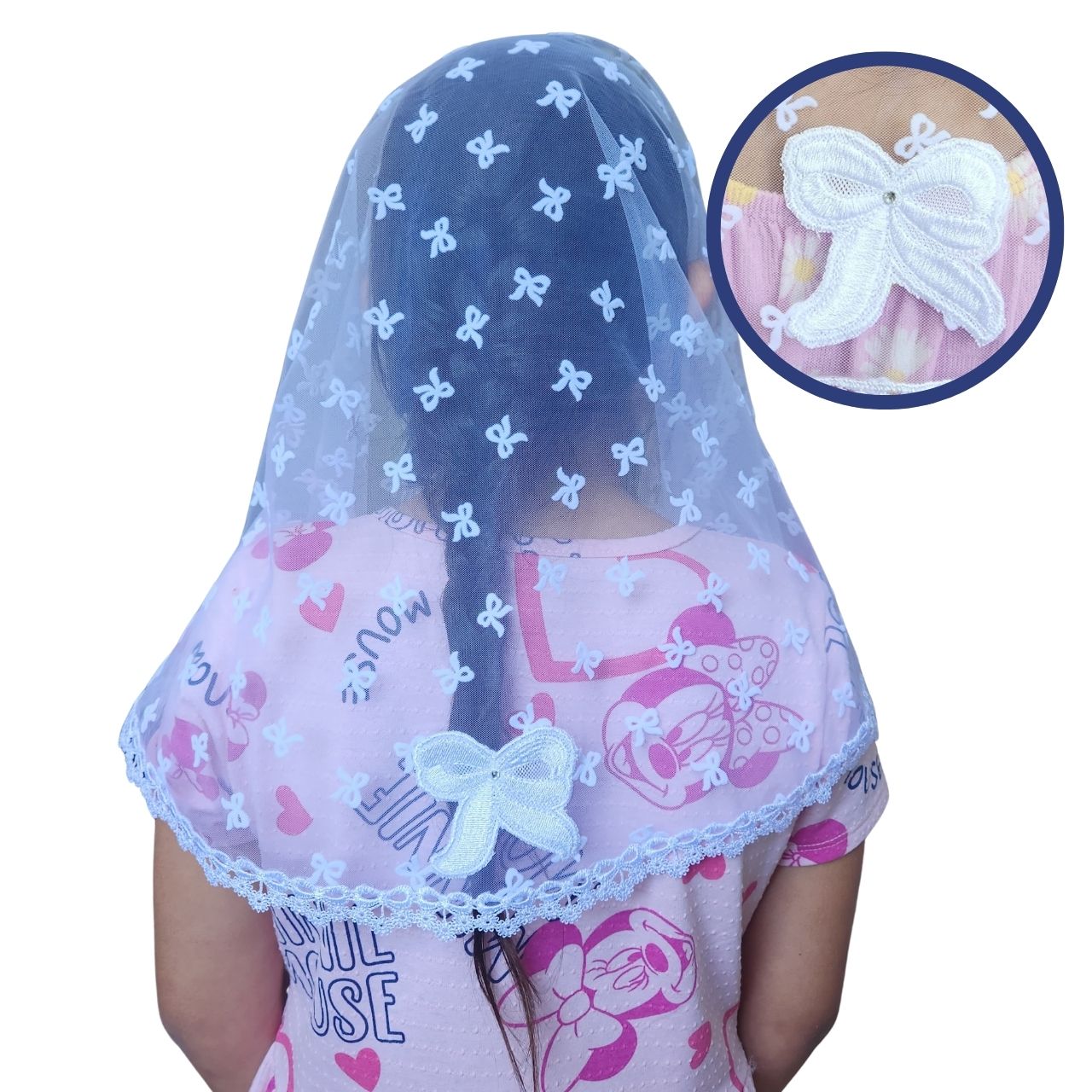 Véu CCB Infantil  Tule Poá Laço Com Aplicação