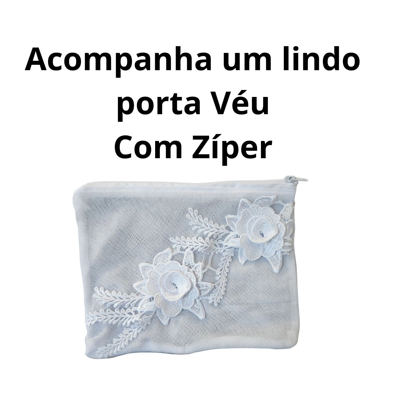 Todos os nossos véus acompanha saquinho porta véu de tule com ziper.