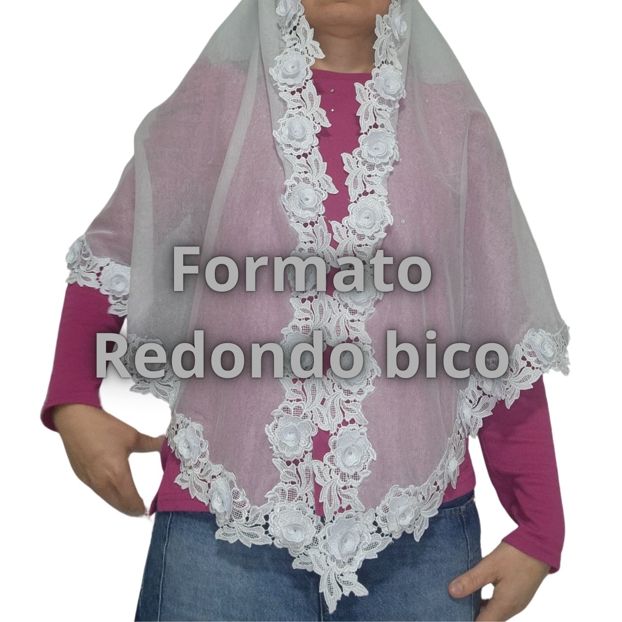 Véu CCB Luxo Rosas Renda 3D Redondo ou Retangular Adulto